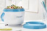 This heated container is convenient to carry with the curved top handle. Built-in warmer works slowly to prevent overcooking your food. Food container is dishwasher-safe. Available in multiple colors.