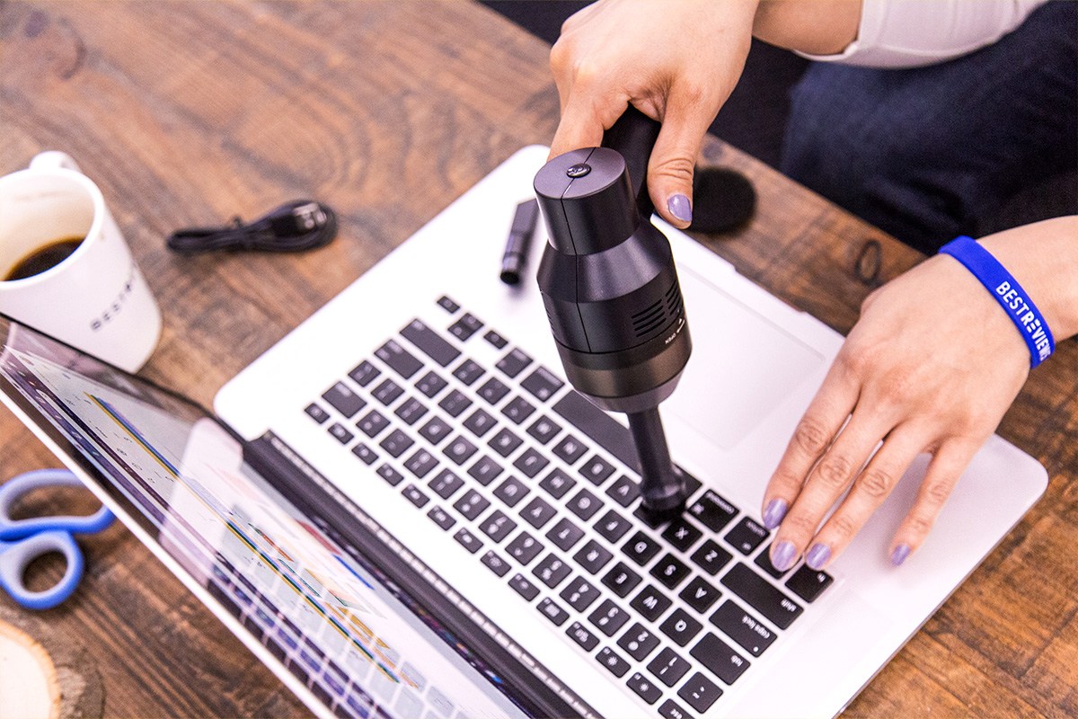 This gadget is a good choice for deep cleaning your keyboard, as well as your car. The strong motor picks up the smallest of particles and functions as a blower, too. It comes with various attachments for getting into different electronics.