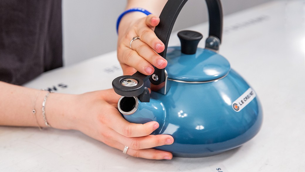 All Le Creuset tea kettles have stay-cool handles, but one of its kettles has some uncovered metal near the handle. Pick a kettle with a completely stay-cool handle if you’re worried about burns.