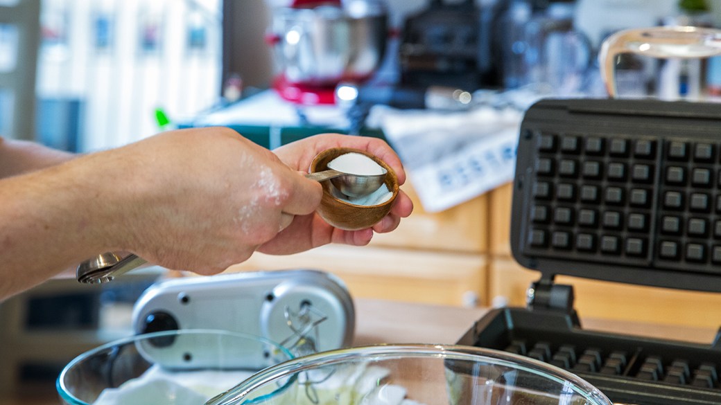 A double-sided measuring spoon has a spoon on each end. One is rounded for liquid ingredients and the other is curved as a scooper for dry ingredients. This way you don't have to worry about drying a wet spoon before dipping it into something that will stick to the moisture. It's an efficient, practical option that can reduce mess and fumbling as you measure out each ingredient.