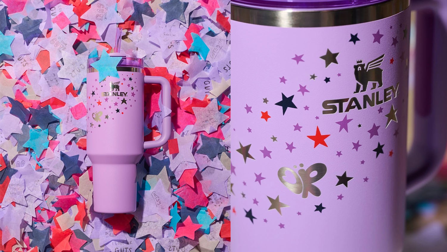 Olivia's Quencher collab comes in her signature purple shade, and it has a clear "Sour" grape lid and reusable straw. The sides of the tumbler are decorated with stars in vampire-red and silver as a nod to the "Guts" album. This 40-ounce tumbler will be available for $55 starting Tuesday, July 9. To give buyers a fair chance, Stanley is running an EQL launch, meaning everyone who signs up during the drop window will have an equal chance of getting selected to purchase one, regardless of when they sign up.