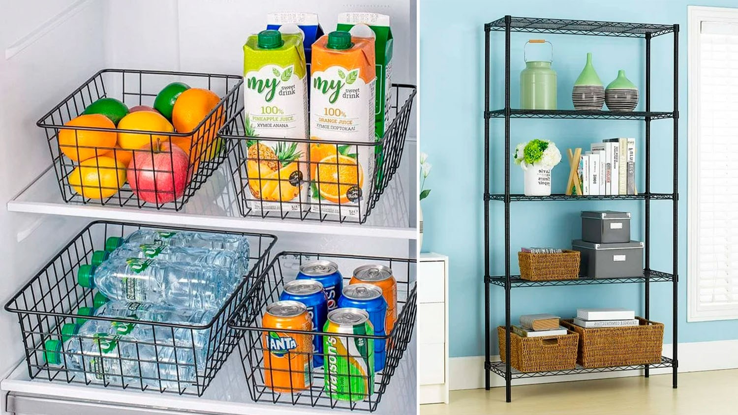 Get organized with these five shelves constructed from sturdy iron wire. Each shelf can hold up to 250 pounds and the unit's feet can be individually leveled for stability.